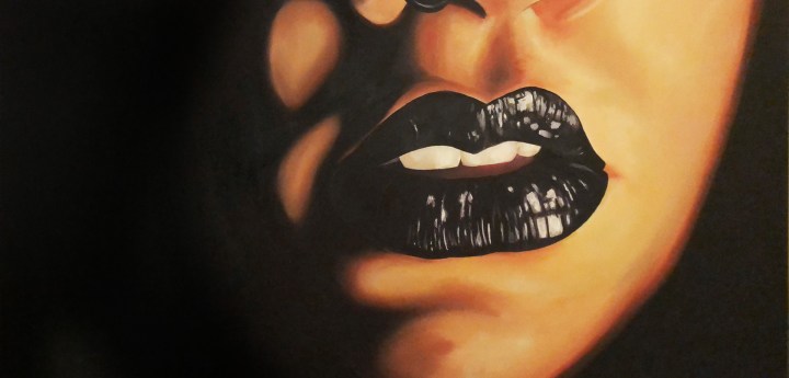 When I was in school at RMCAD, I painted a close up of my lips coated in black lipstick. At that point in time, I didn’t spend very much time prepping my surface. That painting was actually the turning point for how much time and energy I put into the layers and layers of gesso and sanding. I loved how the painting turned out, but the canvas was kind of bumpy and could have looked so much better. This was my chance for redemption for that painting.